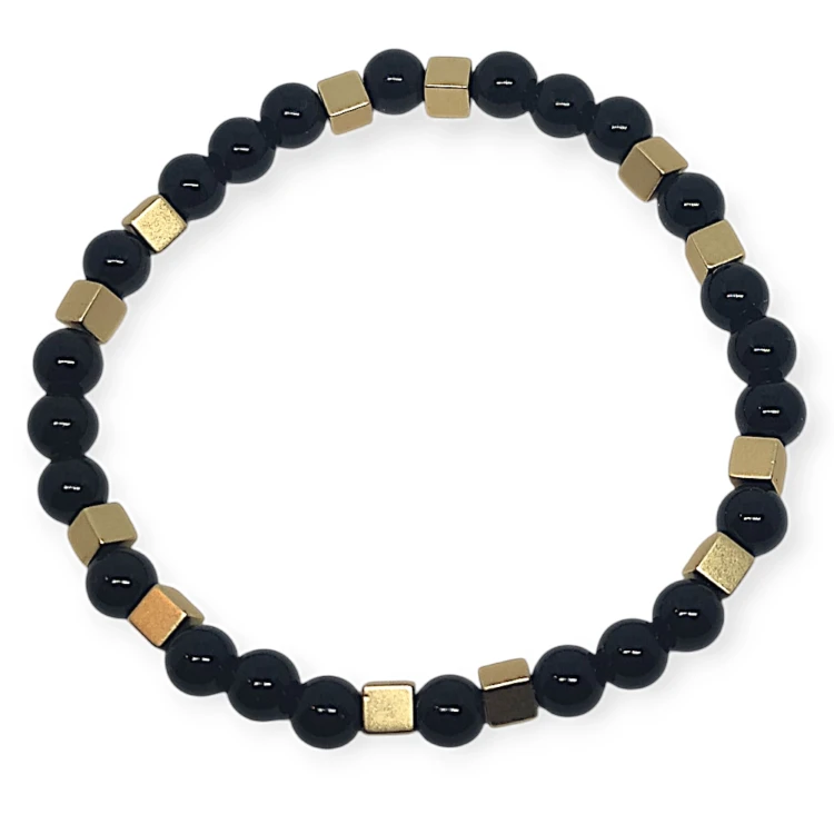 Wyjątkowa bransoletka to harmonijne połączenie dwóch niezwykłych kamieni: agatu czarnego i hematytu. Każdy z nich od wieków ceniony jest za swoje właściwości ochronne i energetyczne, tworząc razem wyjątkowy duet, który wspiera zarówno ciało, jak i umysł.