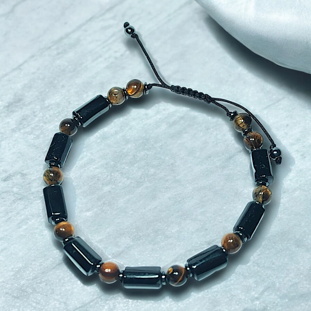 Odkryj potężne połączenie energii i stylu w nowej bransoletce, wykonanej z naturalnego tygrysiego oka, czarnego turmalinu i hematytu. To niezwykłe połączenie kamieni szlachetnych nie tylko zapewni ci siłę, ochronę i harmonię każdego dnia, ale również podkreśli twój unikalny charakter i wpłynie pozytywnie na twoje samopoczucie.